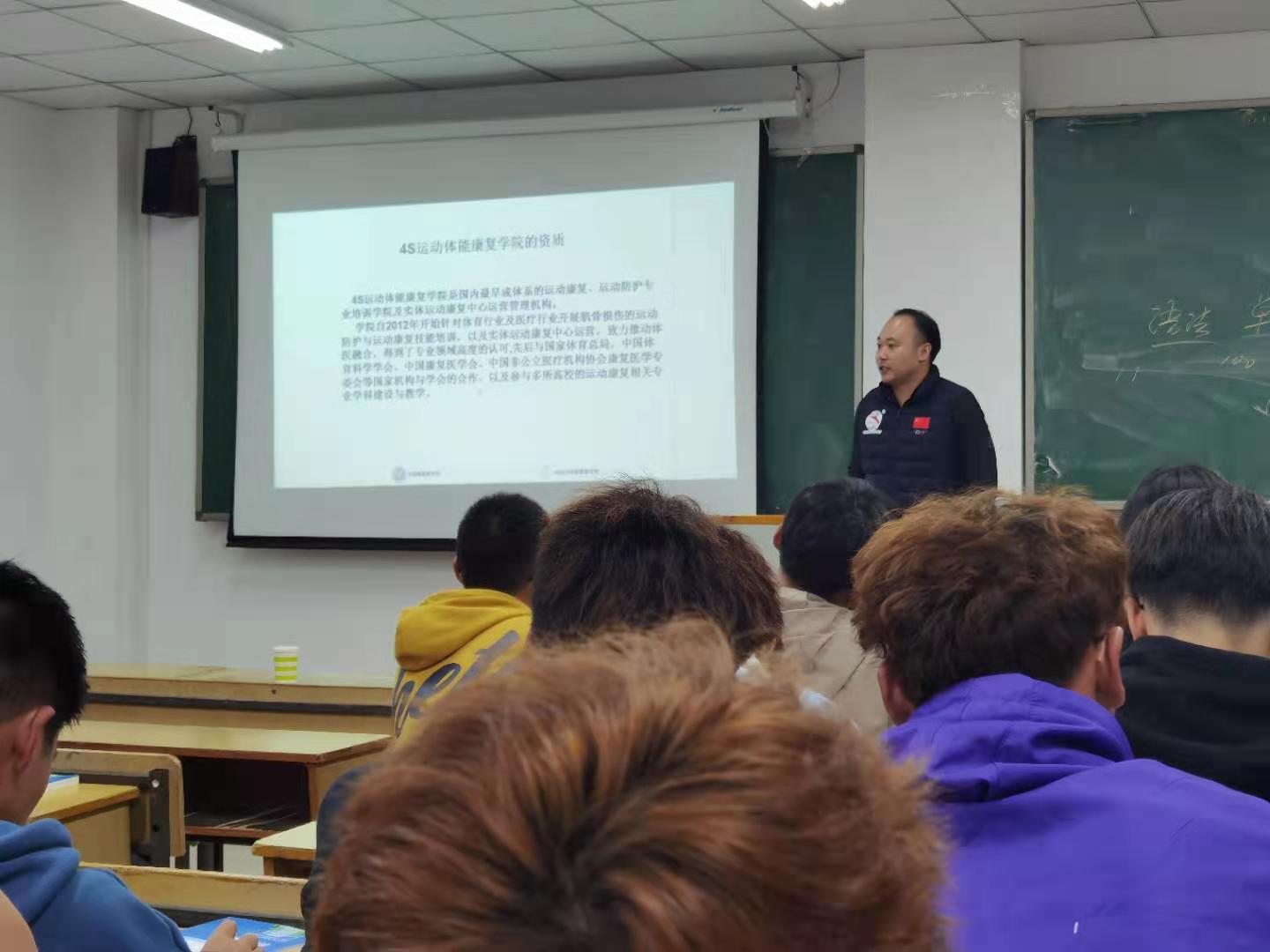2020年11月9日,星空体育官网登录邀请上海“4S”运动康复学院副院长杨利帮出任本次讲座的主讲人为学生讲解就业相关方面的知识。