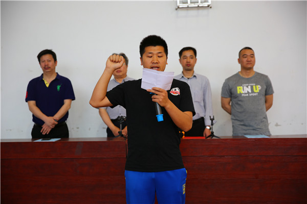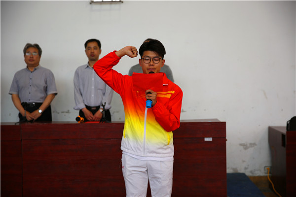 运动员代表聂贺宇和裁判员代表袁野宣誓。
