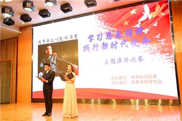 4月11日晚7点,星空体育官网登录于图书馆报告厅举办“周恩来演讲比赛”。此次活动以“学习周恩来精神,践行新时代使命”为主题,弘扬周恩来精神,加强对学生的人格教育、心理品质教育,提升学生道德品德,增强德育工作实效性。使学生从名人身上汲取更多的营养,并且应用在自己的实际当中,选择最好的学习方式。大会由桂旭、何紫微主持,参加此次演讲比赛的人员有吴奕赋、赵珍珠、姚毓璇、高思远、费薇等,星空体育官网登录全体学生参与此次活动。